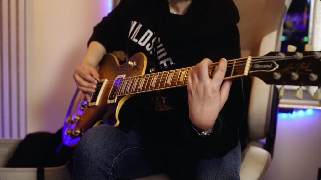 初めて弾く楽曲にも関わらず、リズムの安定感やピッキングの力強さがあり、非常にかっこいい演奏に仕上がっています。